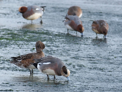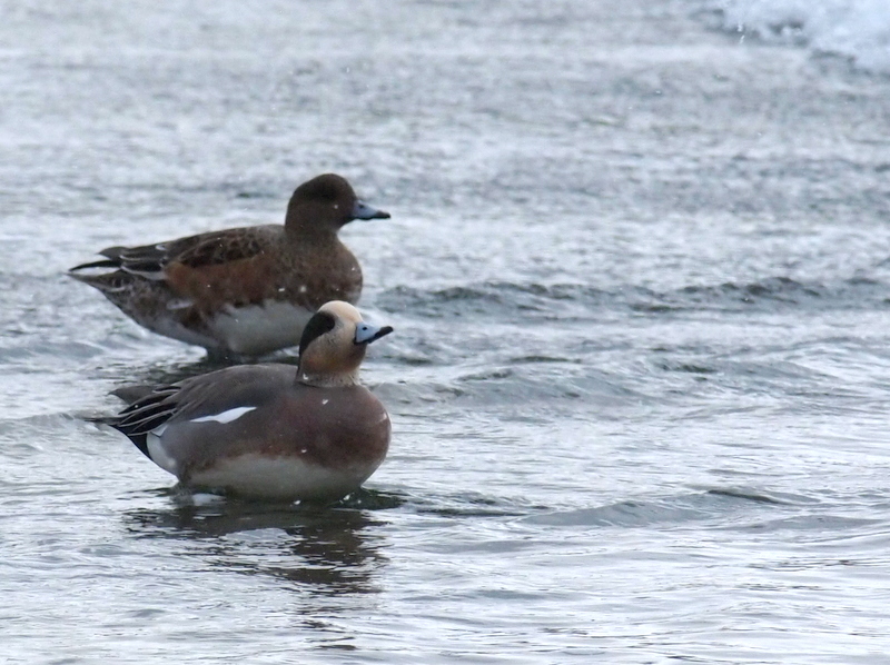 先日漁港でコクガンを撮ったとき、実はアメリカヒドリにも出会っていました。