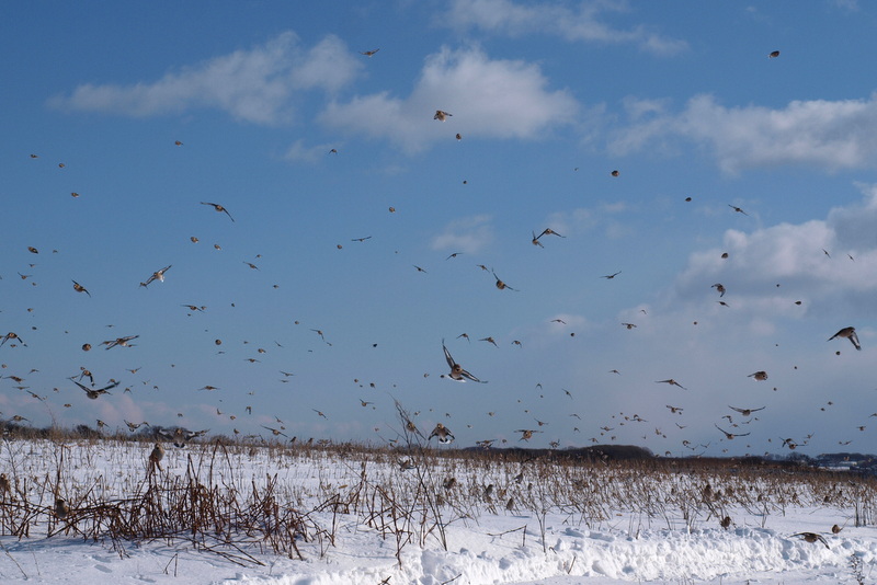 初めて見たシメの大群と、それを狙う猛禽との攻防は迫力満点でした。