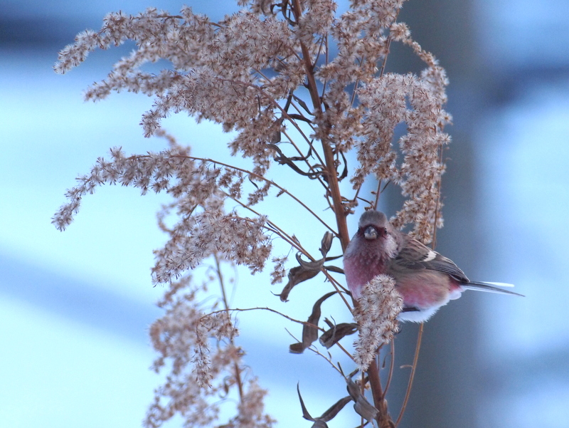 冬羽で色褪せてはいますが、ほんのりと赤い色をした美しい雄です。