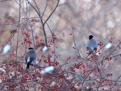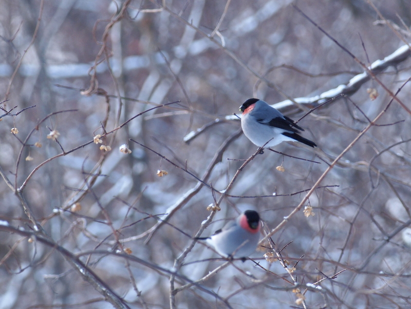 風のない穏やかな日、たくさんの木の実や草の種に恵まれた小鳥たちを見るのは