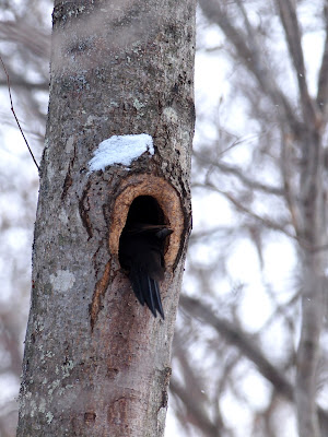 途中、奇妙な声を出しながら 別のクマゲラが真上を飛んで行きました。
