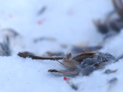 襲われて間がないと思われる羽の付け根には、鮮血が付着していました。