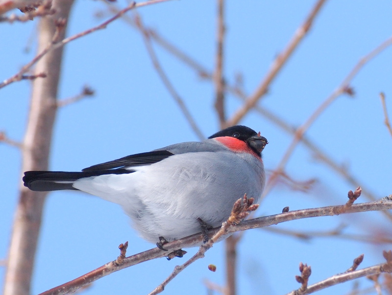 私を気にする様子もなく 黙々と新芽を食べ続けるウソ。