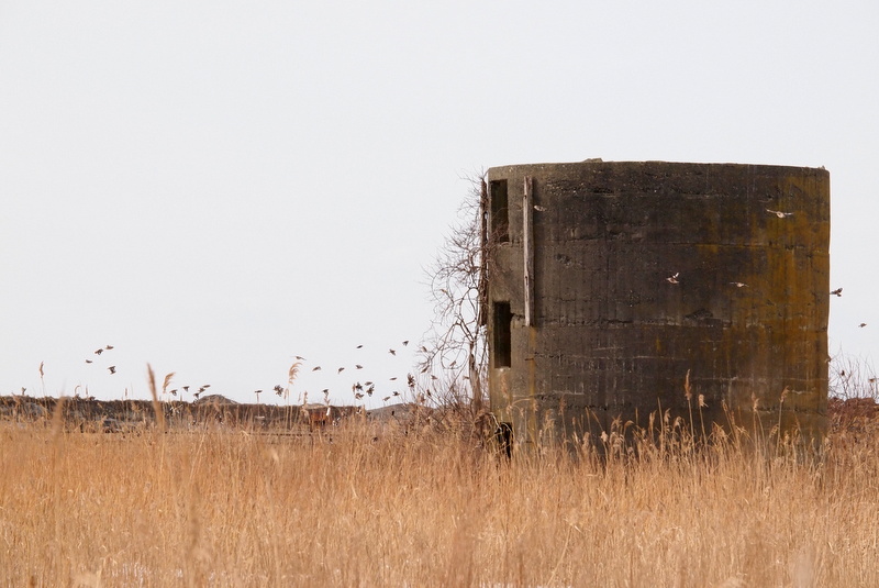 草原の向こうに、コンクリートでできた円筒状のサイロ(?)が見えました。