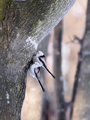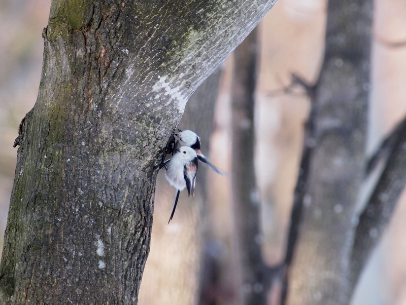 スズメ目エナガ科 シマエナガの樹液なめなめ omasa 2013年2月14日 近所の公園でシマエナガの群れに会いました。 マシュマロみたいな白い頭をくっつけて、もしかして ひそひそ話? いえいえ、そうじゃありません。 目的は‥ 甘~い樹液。 ホバリングしながら、なめなめ~♪ そのせいでしょうか。 心なしか羽がベトベトしてるような‥。 うまうまうま‥ 正面顔、ホントに可愛いね~。 尾羽がシュッと長くて、お洒落だね~。 何度見ても飽きないシマエナガ。 写真を撮らせてくれて、ありがとう~!