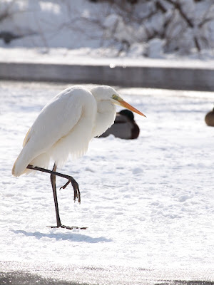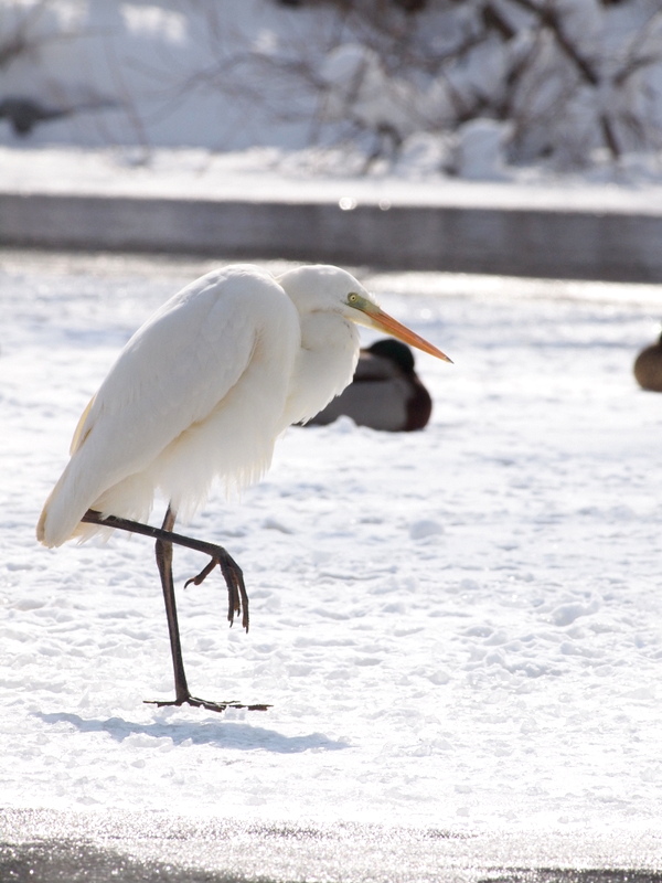 帰り道、池にダイサギが戻っていました。