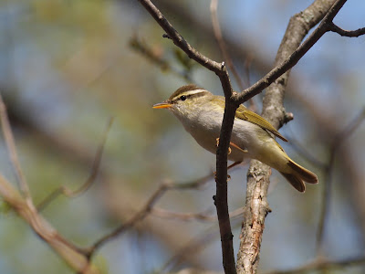 この写真では分かりませんが、別の角度から撮った写真を見るとエゾムシクイの頭に頭央線はありませんでした。