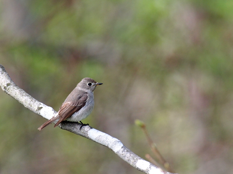 目先の白はPCの画面を見ないと分かりませんが、サメビタキの胸や腹には、少しグレーがかっている部分があるように思います。