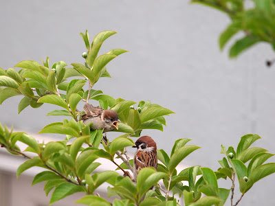 飛ぶのが上手な上の子が、親鳥から虫をもらいました。