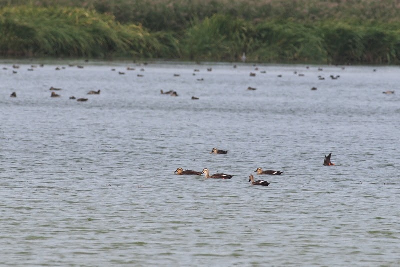 カルガモやマガモ、オナガガモの群れなどが、遠くに見えました。