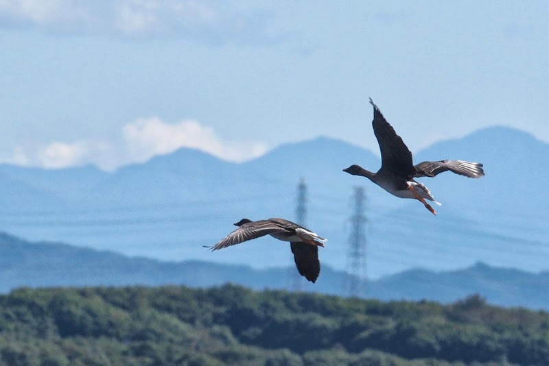 ヒシクイに混じってマガンやコハクチョウの姿を見られる日も、