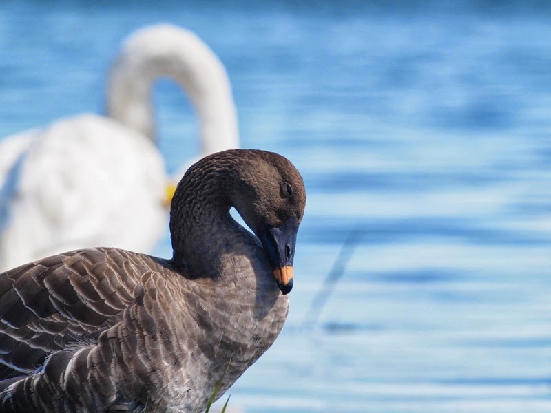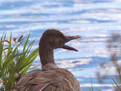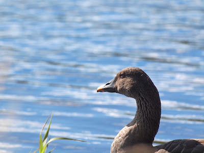 湖岸で羽を休めている 新顔のヒシクイに出くわしました。
