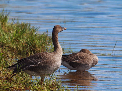 並んだ2羽のヒシクイを見ながら、