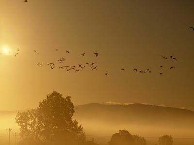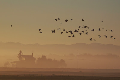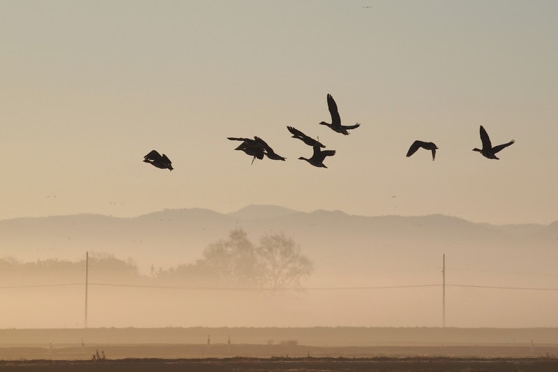 4万近くのマガンの鳴き声が、暗闇を満たします。