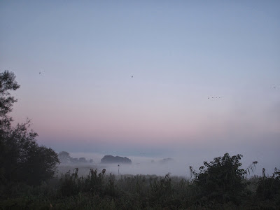 気温が低かったせいか、沼は朝霧に覆われて霞んでいました。
