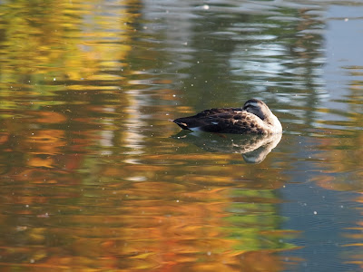 カモ目カモ科 水面の紅葉 omasa 2013年10月21日 恵み野中央公園の紅葉がきれいです。 色づいた落葉樹の葉が池の水面に映り込み、 まるで絵画のようです。 カルガモ マガモ(オス) マガモ(メス) 羽を傷めたヨシガモも 深い秋色のキャンバスに そっと水紋を描いていました。 撮影日 2013/10/18 撮影場所 恵庭市