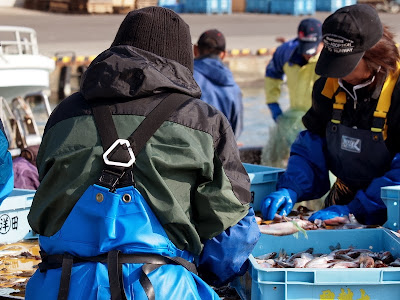漁船、作業、選別されたシシャモ・・・う~ん、味のあるいい写真です。