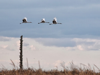 草原の隅に3羽のタンチョウを見つけました。