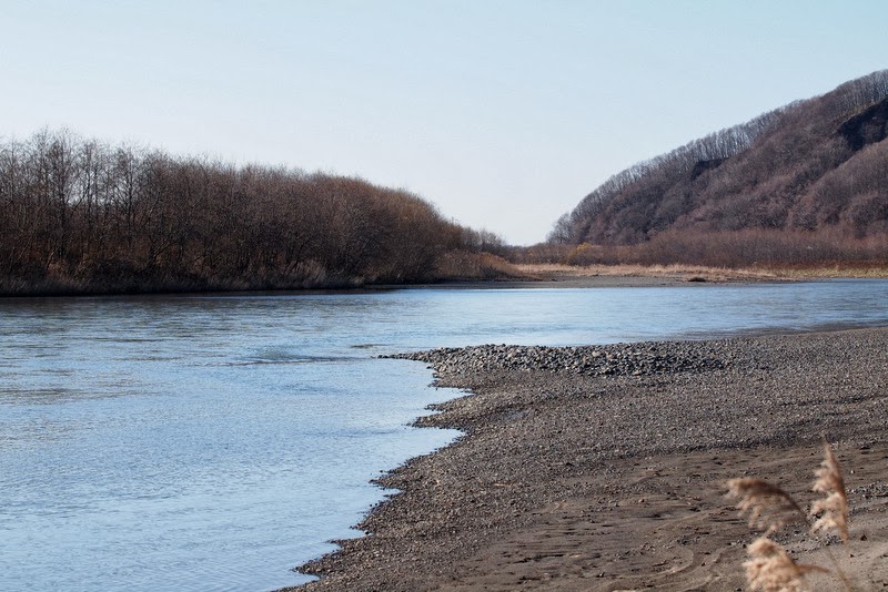 対岸の木の枝にオオワシ成鳥が1羽とまっているのが見えましたが、