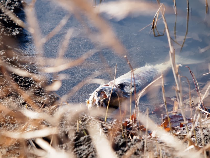川岸で見つけたホッチャレのそばから、カラスが飛び立ちました。