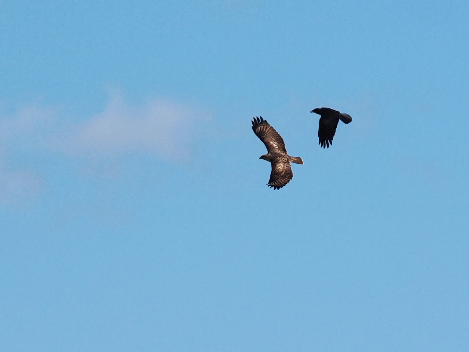 帰り道、執拗にカラスの攻撃を受けるノスリに出会いました。