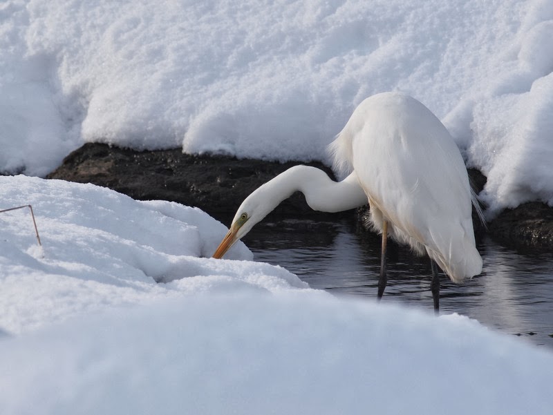 カワアイサにヨシガモ、コガモ、ダイサギ。