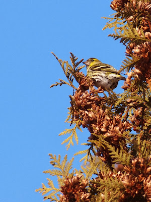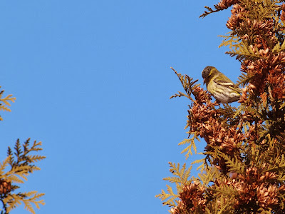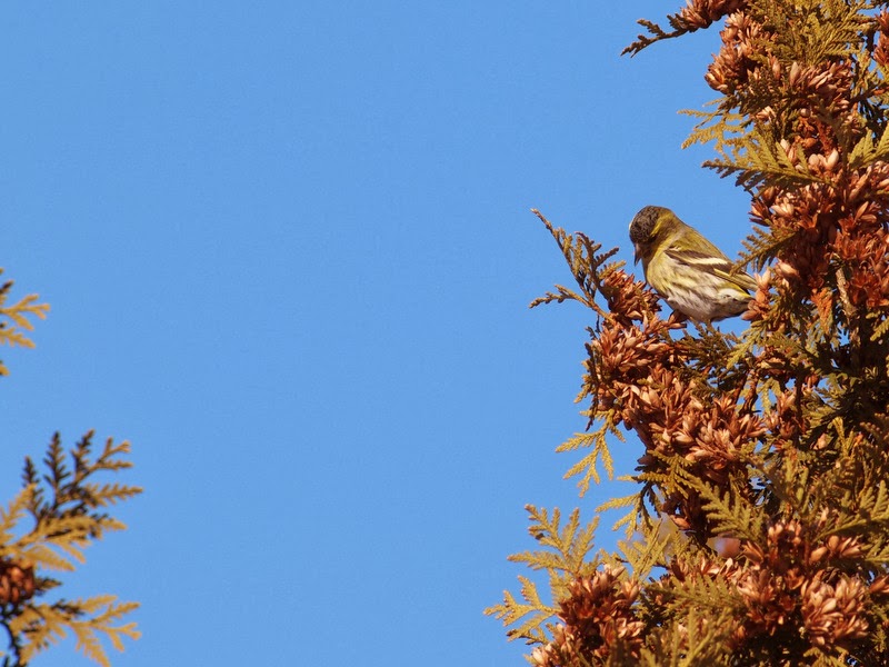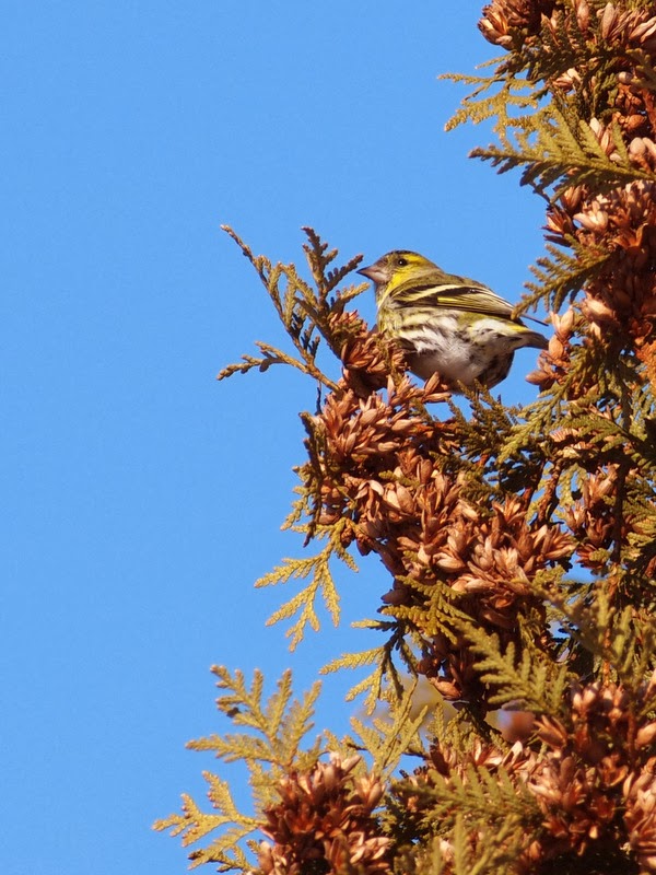 恵庭公園の駐車場近くでマヒワの群れを見つけました。