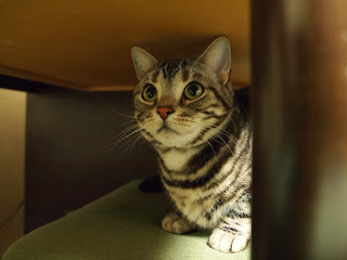 玄関を開けると、留守番をしていた猫が