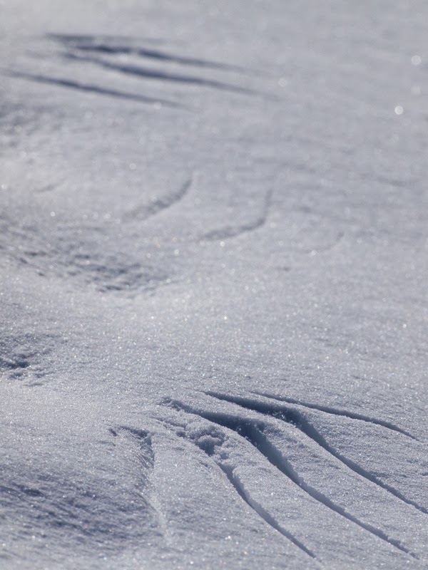 降り積もった雪の上に大きな羽根跡と、拳くらいのくぼみを見つけました。