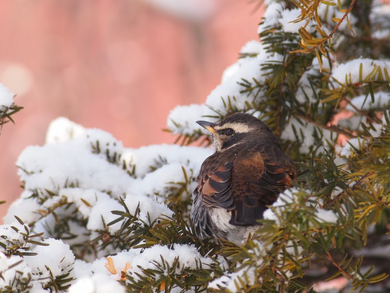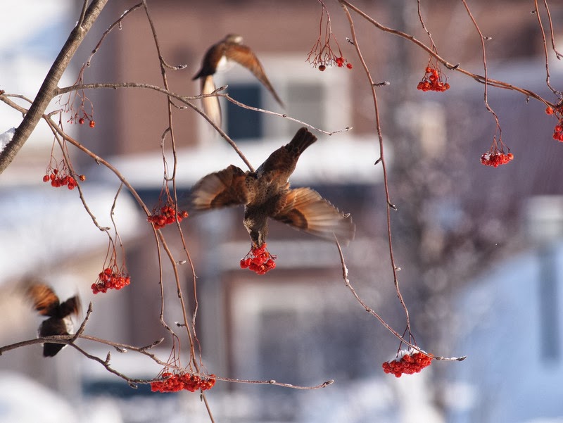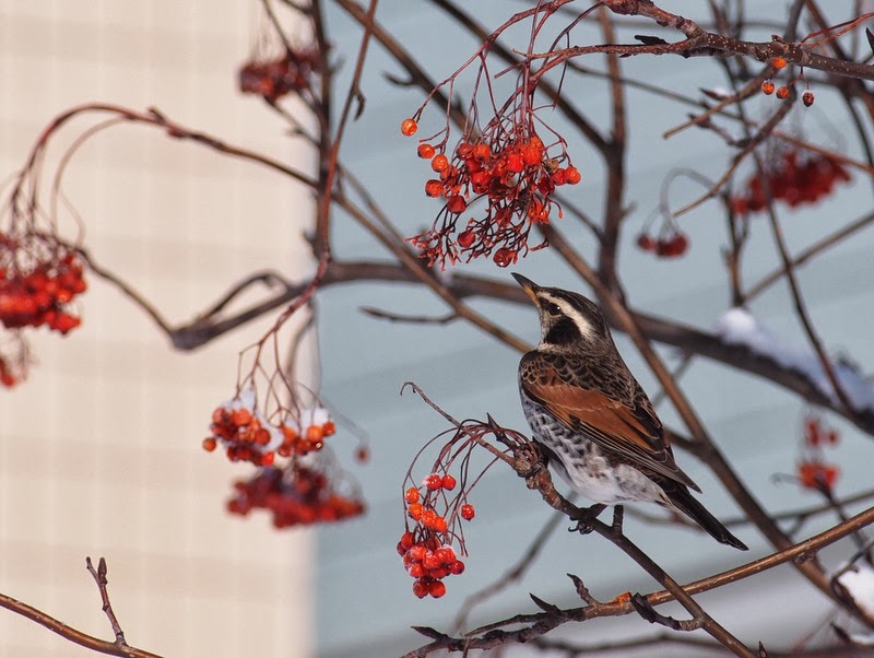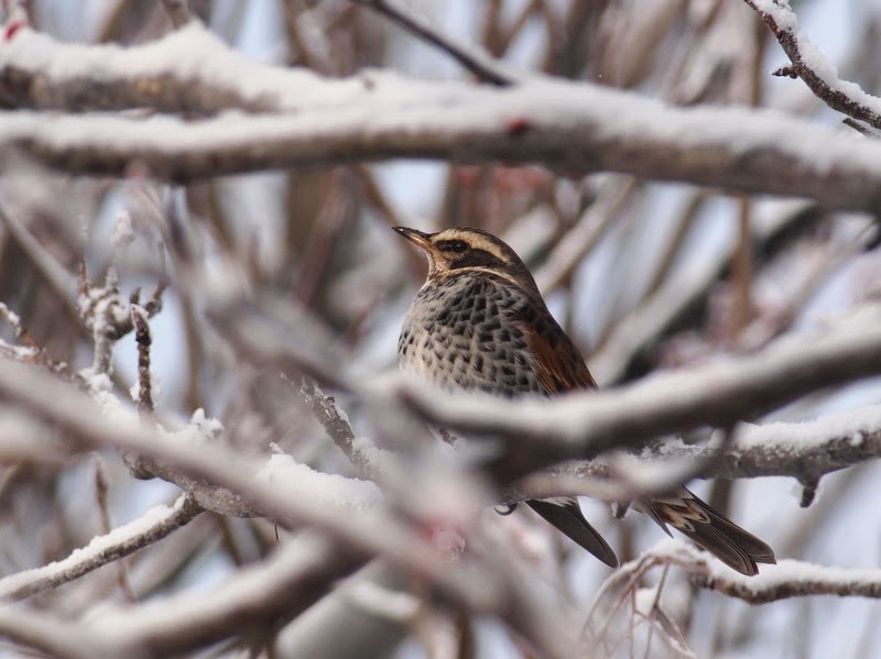 スズメ目ヒタキ科 ツグミ omasa 2014年2月9日 先月の中旬から下旬にかけては、人気の少ない場所で見かけることの多かったツグミ。 このところ市街地の街路樹に群がるようになりました。 イチイの中に、まだ くちばしの黄色いツグミを見つけました。 不思議そうにこちらを見返しています。 ちょっとだけ写真を撮らせてね。 臆病者のツグミ。 いつもはすぐに逃げちゃうけれど、 お食事中はちょっぴり大胆です。 遠慮なく召し上がれ。 ナナカマドの実、まだたくさん残っているから。 撮影日 2014/2/8撮影場所 恵庭市